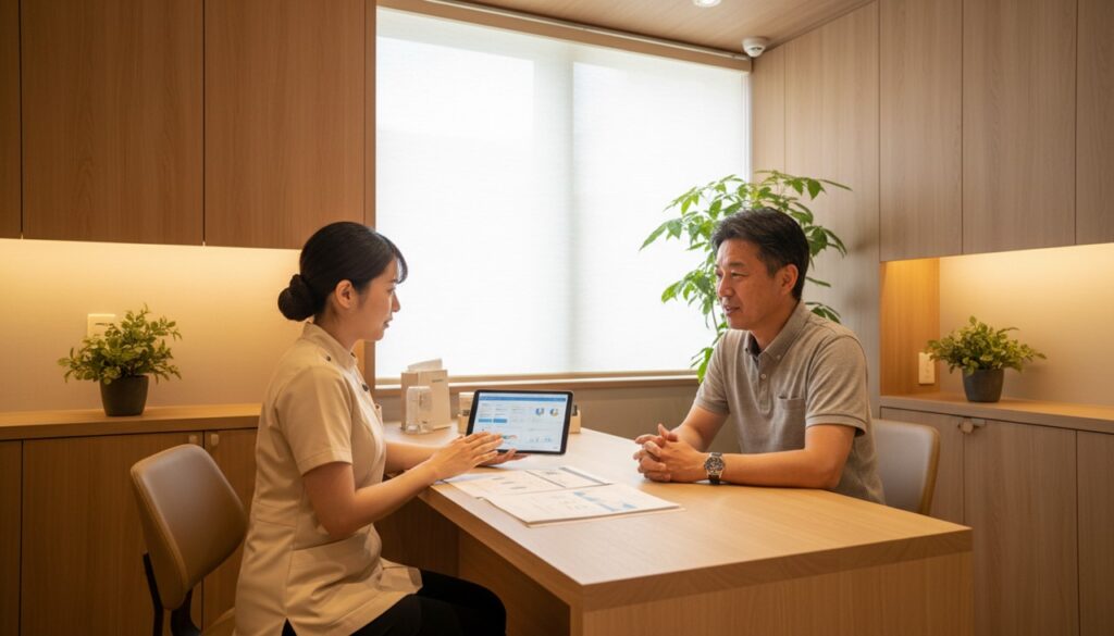寒川駅前ファースト歯科では、無料カウンセリングで治療の可否・期間・費用・リスクまで丁寧にご説明しています。静脈内鎮静法の費用についても、事前に詳しくご案内いたしますので、ご安心ください。